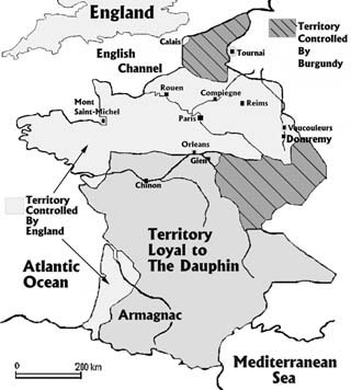 This map shows how France was divided during Joan's time. [copyrighted VLF]