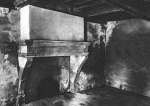 4) Interior of Joan's home - bedroom shared by Joan and her sister, Catherine. Note the framed indentation located in the left wall - this is called a "press". It is the medieval equivalent of our closets. [TF 1984]