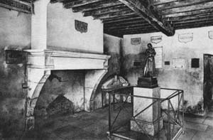 1) Interior of Joan's home - main living area's fireplace. [1910]