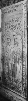 9) Detail of the crude bas-relief burial monument depicting Joan's grand-nephews Jacob and Didier Thiesselin. [1905]