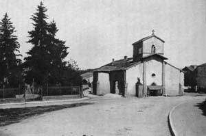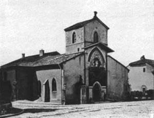 2) This photo shows the front yard of Joan's home and the exterior of Saint Remy church. [1905]