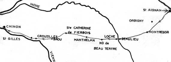 Map showing Joan's route from St. Aignan to Chinon. [The Centre de Jeanne d' Arc - Orleans, France]