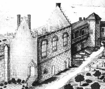 17th century drawing of the 'Great Audience Hall' (foreground) and the Dauphin's apartments (background). [copyrighted VLF]