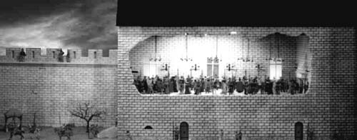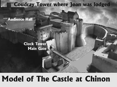 Model of the 'Great Audience Hall' - Chinon castle. Note small structure in the bottom left hand corner of the picture - this is the castle's well into which the drunken, foul mouthed soldier fell and was drowned. [copyrighted VLF]