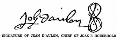 The signature of Jean D' Aulon, Joan's Squire. [1925]