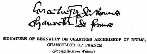 The signature of Regnault de Chartres. [1925]