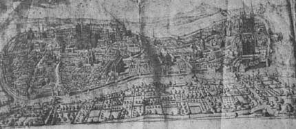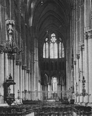 Model showing what the interior of Reims cathedral might have looked like during the coronation of King Charles, the Seventh. [copyrighted VLF]