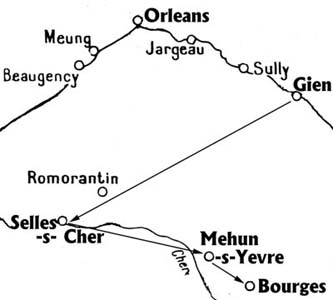 Route Joan took from Gien to Bourges. [copyrighted VLF]