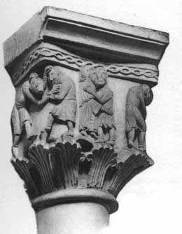 Detail from the top of a 14th century pillar from the church of Saint Pierre. [1910]