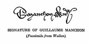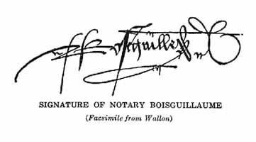 The last page of Joan's trial record. Note the two dark stains at the bottom of the page. The larger stain was where Bishop Pierre Cauchon put his wax seal and the smaller stain was where the Vice-Inquisitor of Rouen - Jean Lemaitre put his seal. [VF 1997]