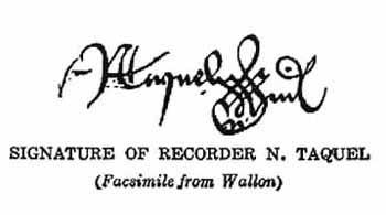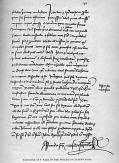 Facsimile of Joan's trial record with the words in Latin "fatal answer" written in the margin. [1925]
