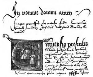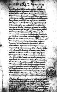 Photo of the first page of one of the Latin copies of Joan's trial record.